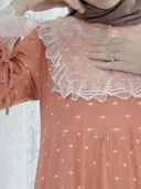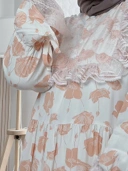 Design yang super chic, dengan aksen brocade lace pilihan Fhanza dibagian dada dan lengan serut pastinya bikin Emily Dress makin cantik pada saat dipakai.
