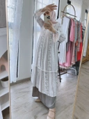 Untuk bahan Fhanza pilih material Cotton Rayon dengan kualitas premium, dengan pattern cantik. Detail bunga mixed dot dominan warna pink per panel, Mixed with brocade lace import , so classic so simple.